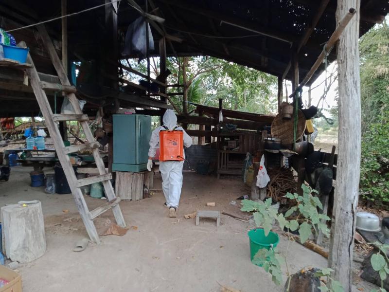 งานป้องกัน อบต.หนองขุ่นใหญ่ดำเนินการพ่นฆ่าเซื้อโควิค ม.4